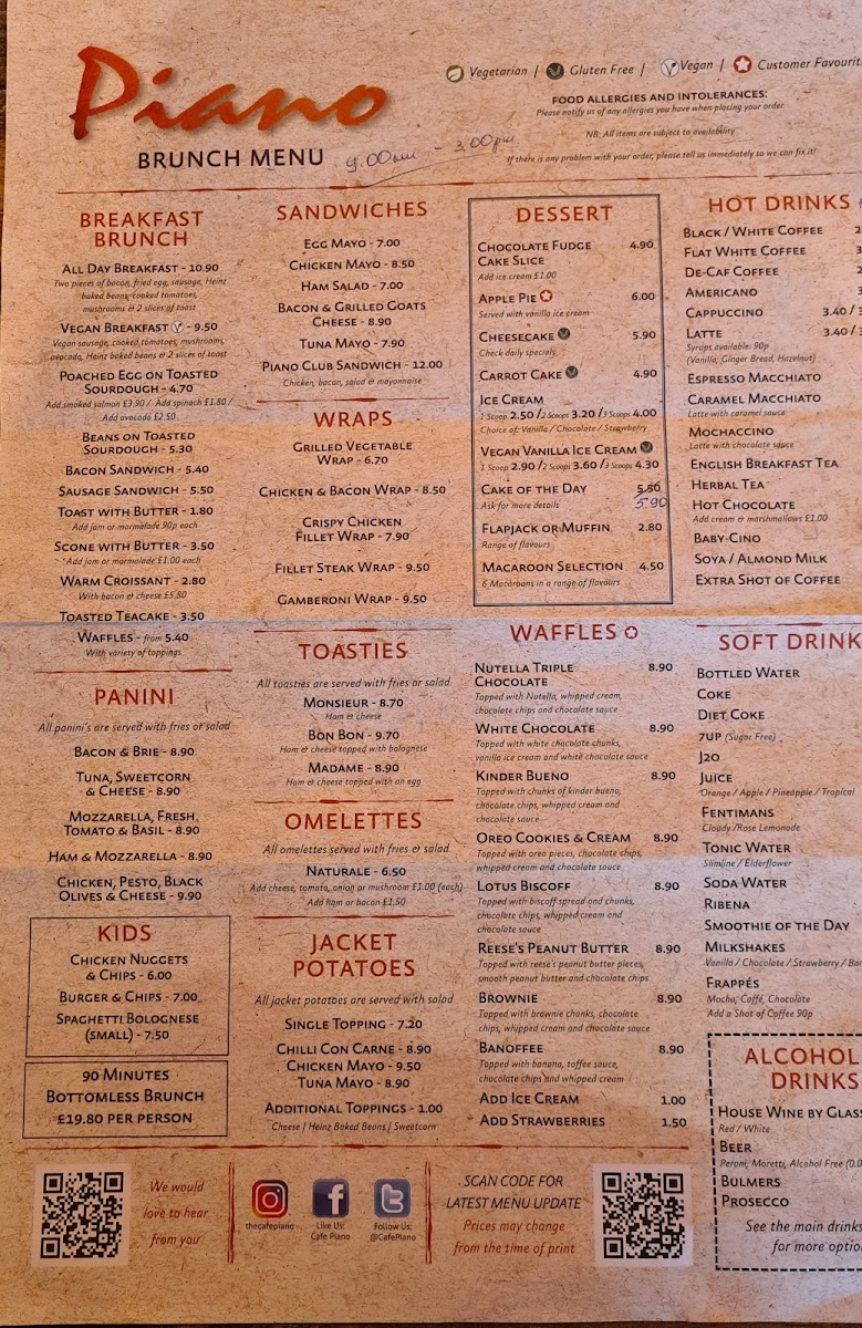 From hearty mains to lighter options, each dish is designed with fresh ingredients and a touch of creativity, making sure every bite feels special. The friendly vibe makes it an ideal place to unwind and enjoy good food, perfect for a casual night out or a relaxed lunch. Come in and let Piano Menu surprise you with flavors that resonate just as much as its name.